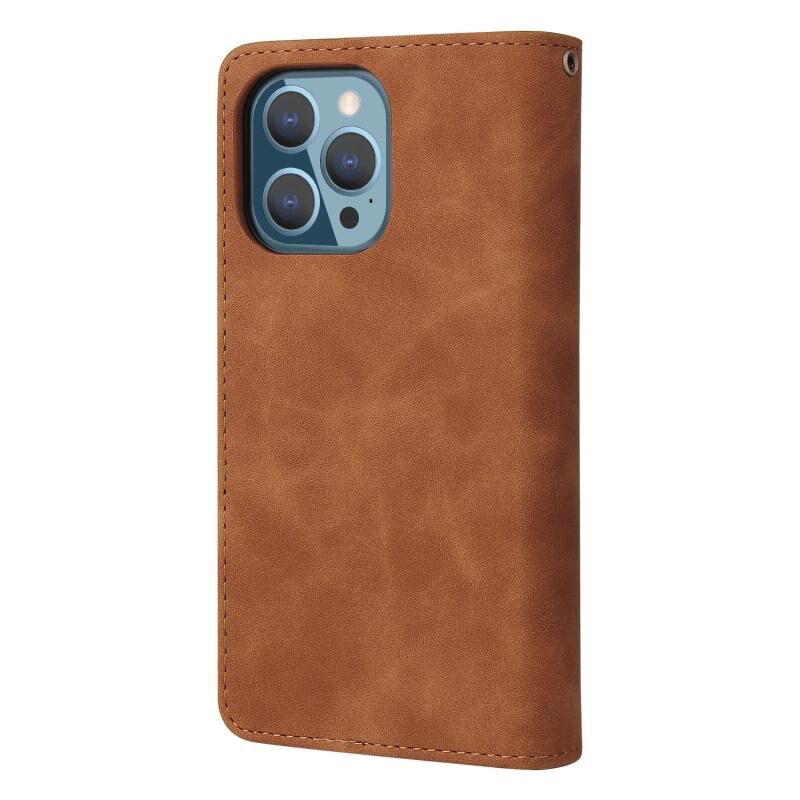 Θήκη τηλεφώνου από δέρμα πολλαπλών χρήσεων για iPhone 13 Pro Max με θήκη για κάρτες & στήριξη & πορτοφόλι με φερμουάρ & κορνίζα φωτογραφιών (Κρασί)