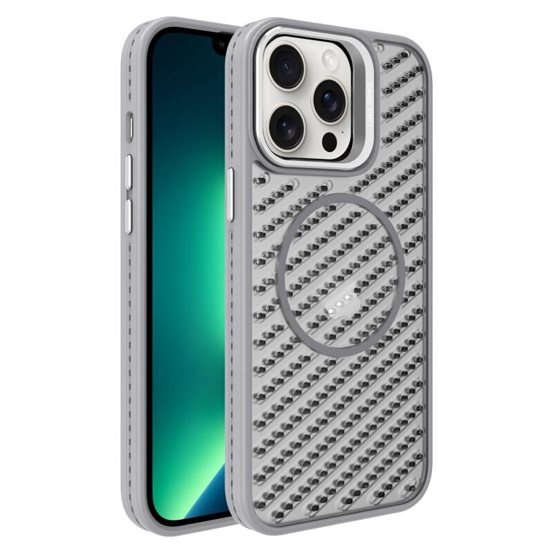 For iPhone 13 Pro Max O-Shape Hollow Cooling Lens Holder MagSafe Phone Case(Grey)