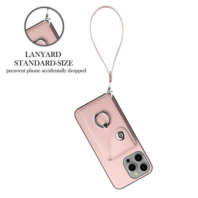 Θήκη κινητού τηλεφώνου για iPhone 13 Pro Max με κάρτα οργάνωσης, δακτύλιο στήριξης και λουρί από PU (Μπλε)