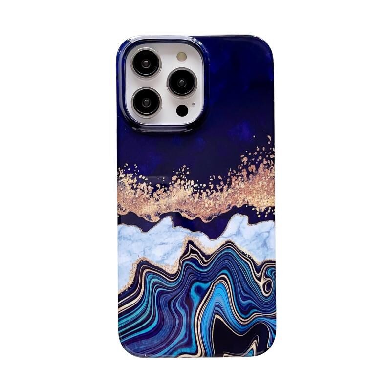 For iPhone 13 Pro Max Pattern PC Shockproof Protective Phone Case(Gold Purple Marble)
