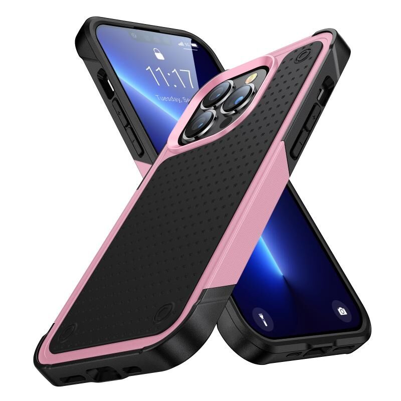 For iPhone 13 Pro Max PC + TPU Shockproof Protective Phone Case(Pink+Black)
