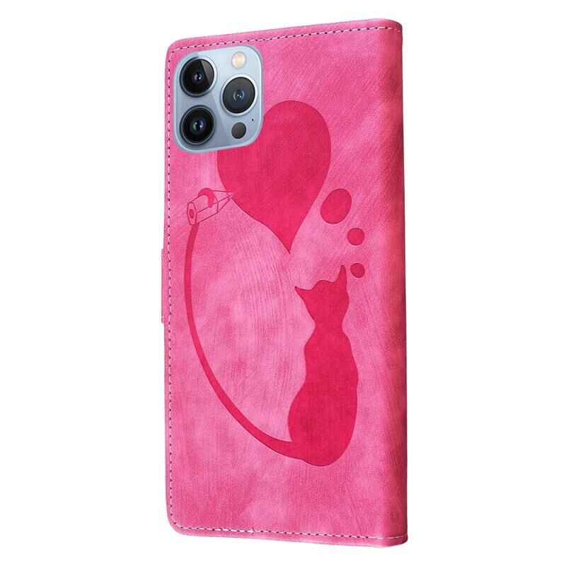 For iPhone 13 Pro Max Pen Heart Cat Embossed Leather Phone Case(Pink)