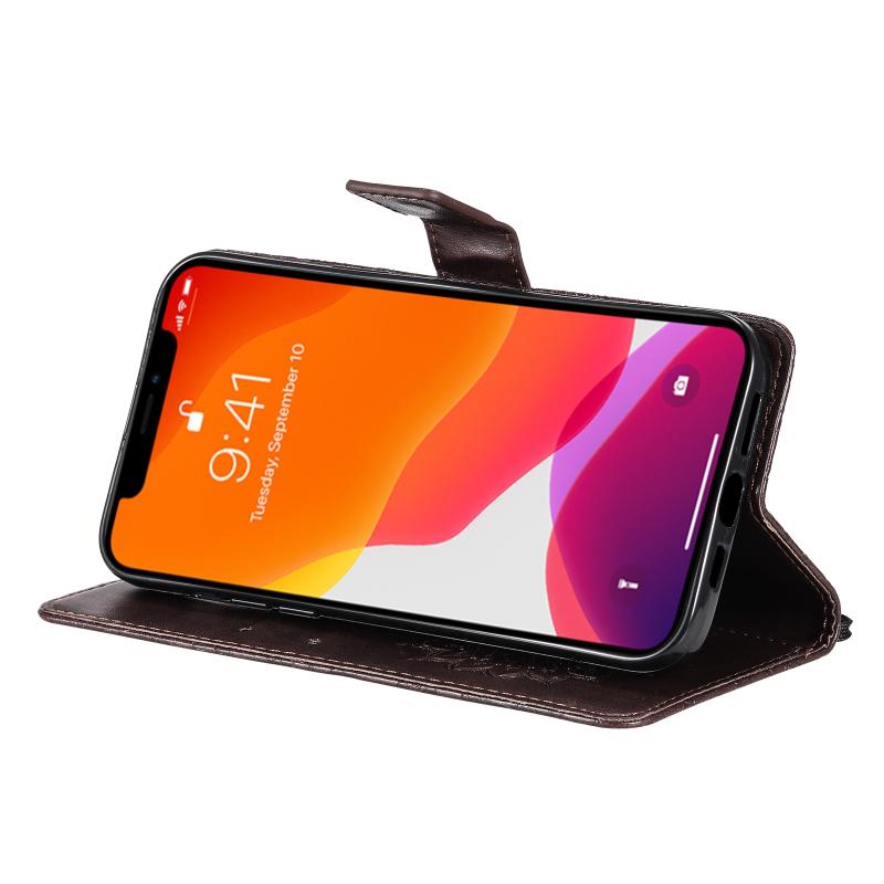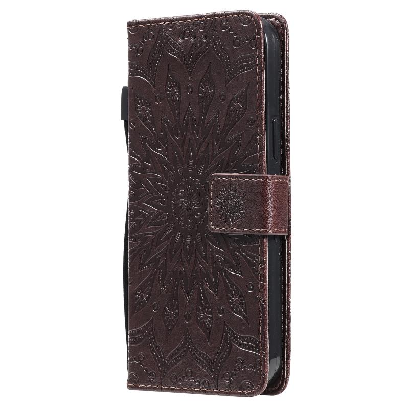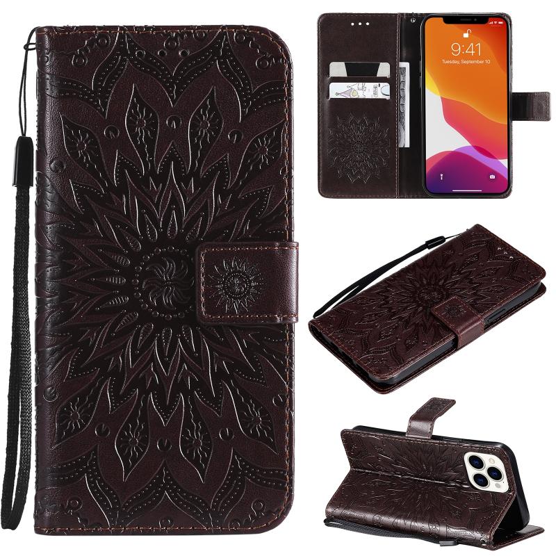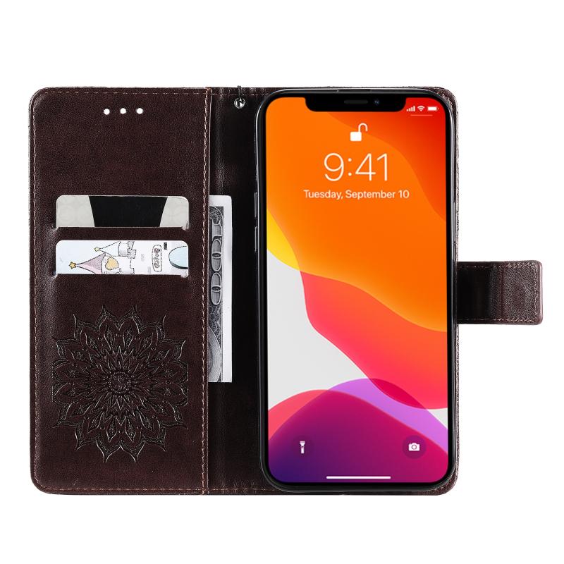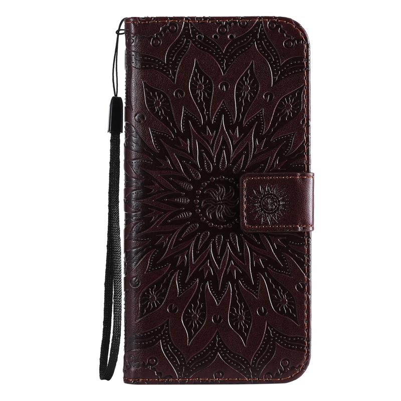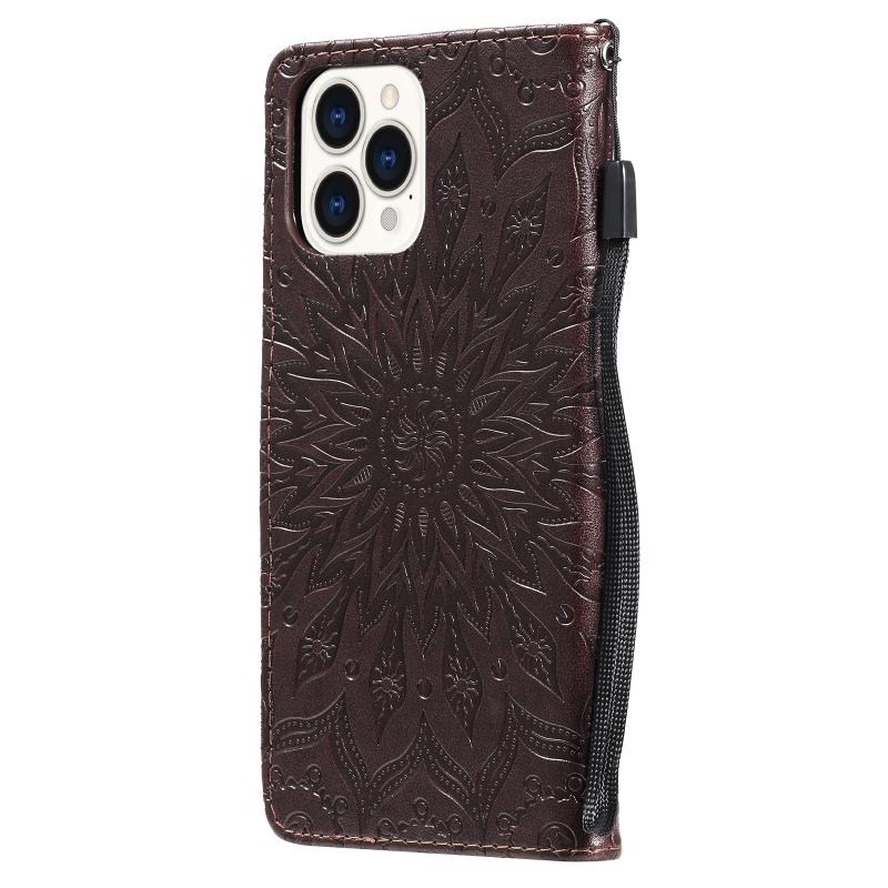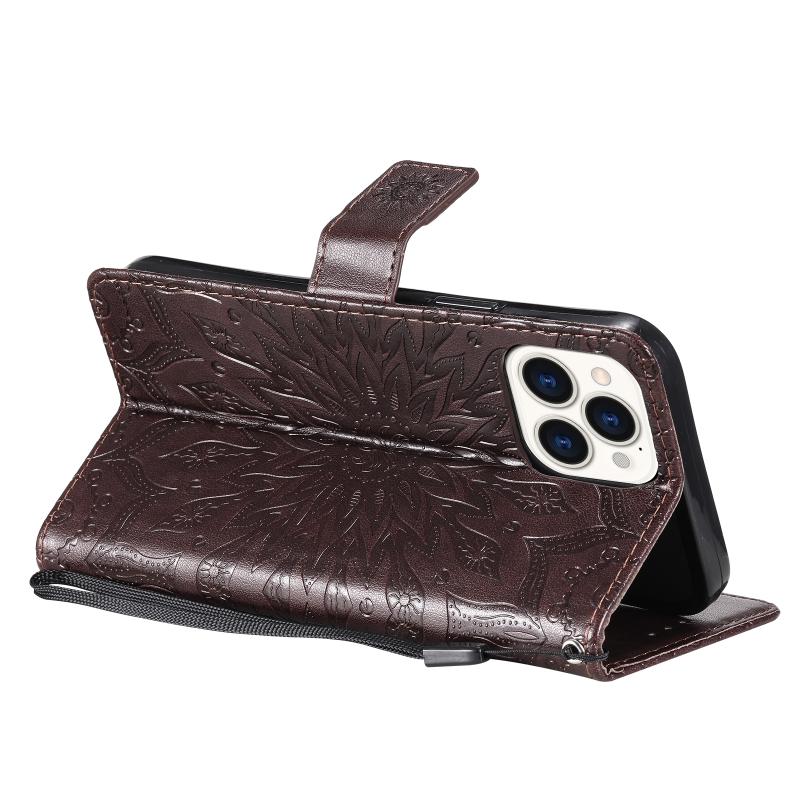 Θήκη για iPhone 13 Pro Max με εκτυπωμένο σχέδιο ηλιοτρόπιου, οριζόντια, από δερματίνη PU, με θήκη & υποδοχές για κάρτες & πορτοφόλι & κορδόνι (Καφέ)
