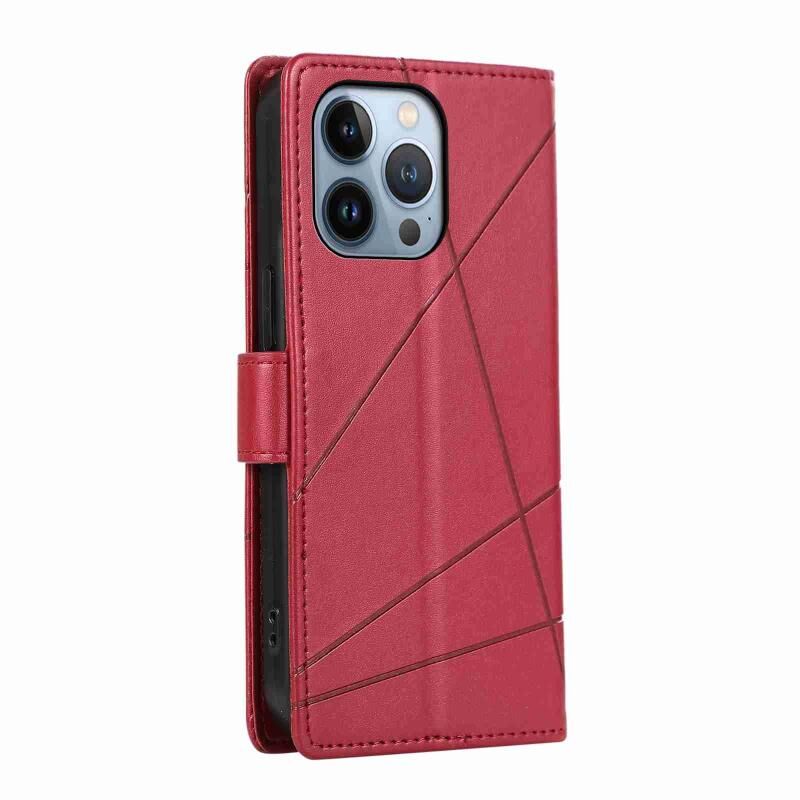 Θήκη τηλεφώνου για iPhone 13 Pro Max από γνήσιο δέρμα PU με ανάγλυφη υφή και λεπτομέρεια γραμμής (Μπλε)