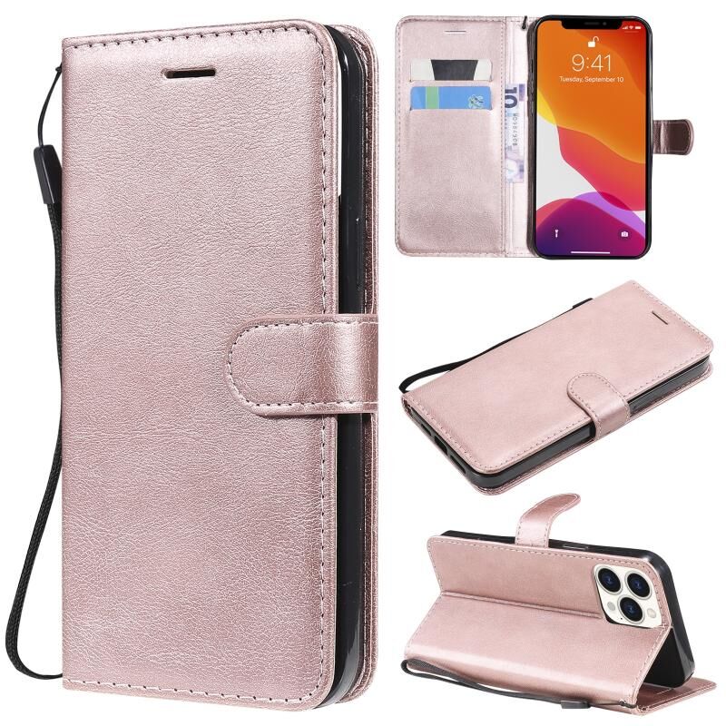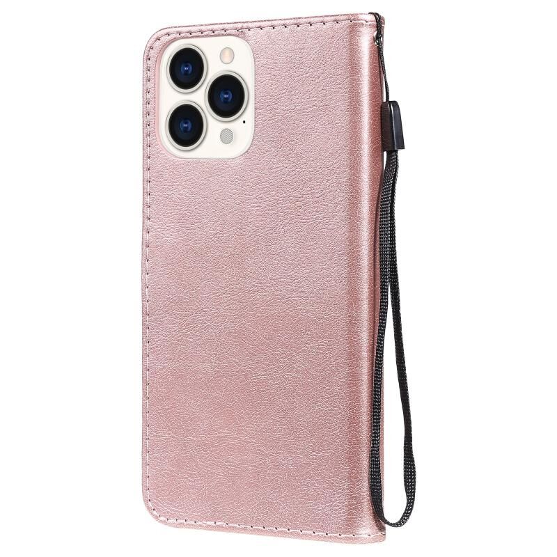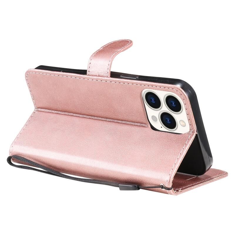 For iPhone 13 Pro Max Pure Color Horizontal Flip Leather Case with Holder & Card Slots & Wallet & Lanyard (Rose Gold)