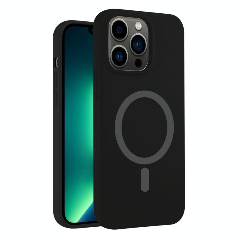 For iPhone 13 Pro Max Pure Color Liquid Silicone MagSafe Phone Case(Black)