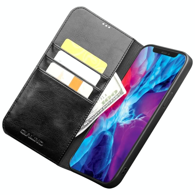 For iPhone 13 Pro Max QIALINO Horizontal Flip Leather Case with Holder & Card Slots & Wallet (Black) (QIALINO)