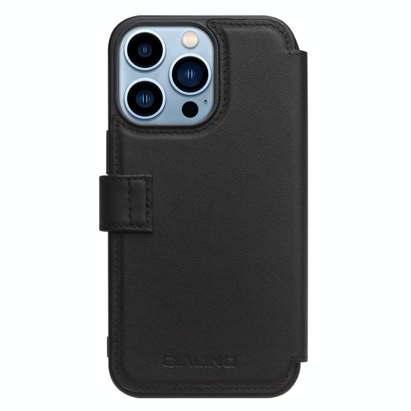 For iPhone 13 Pro Max QIALINO Magnetic Buckle Phone Leather Case with Card Slot (Black) (QIALINO)