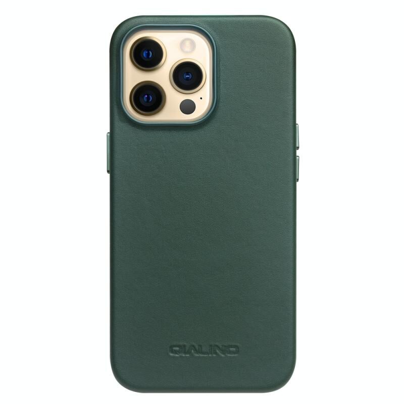 For iPhone 13 Pro Max QIALINO Nappa Cowhide MagSafe Magnetic Protective Case (Dark Green) (QIALINO)