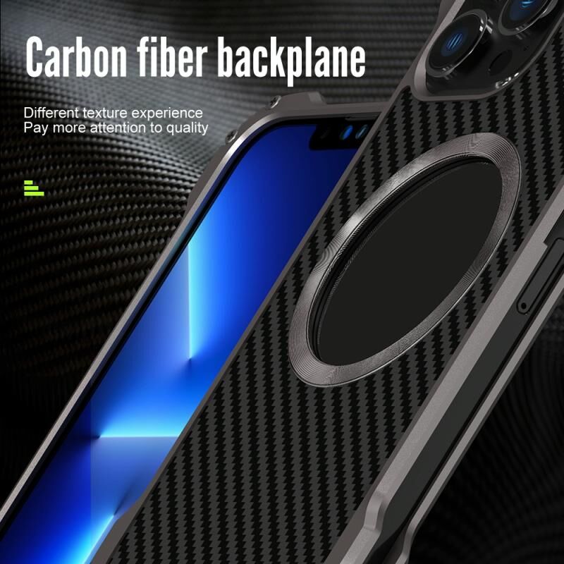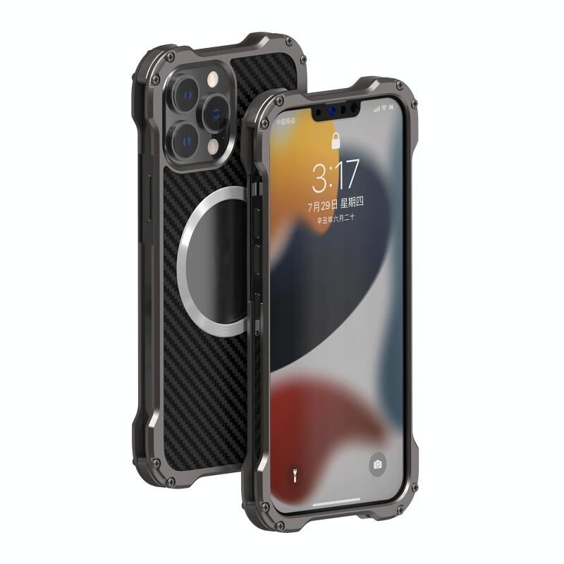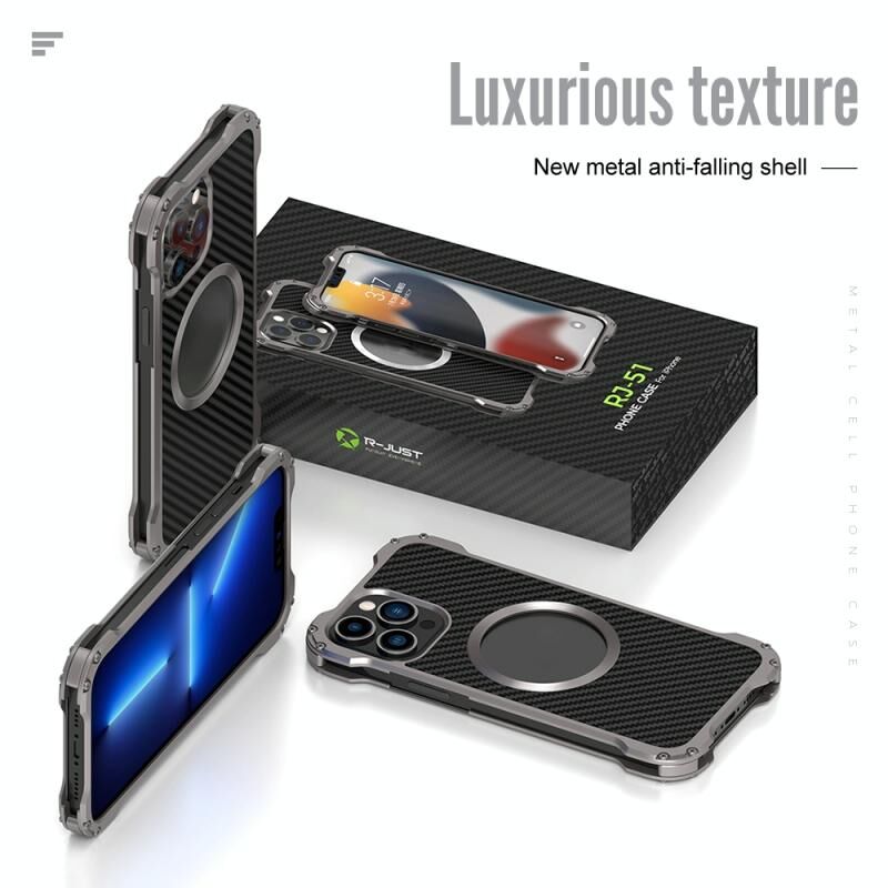 For iPhone 13 Pro Max R-JUST RJ51 Hollow Shockproof Metal Protective Case (Dark Grey) (R-JUST)