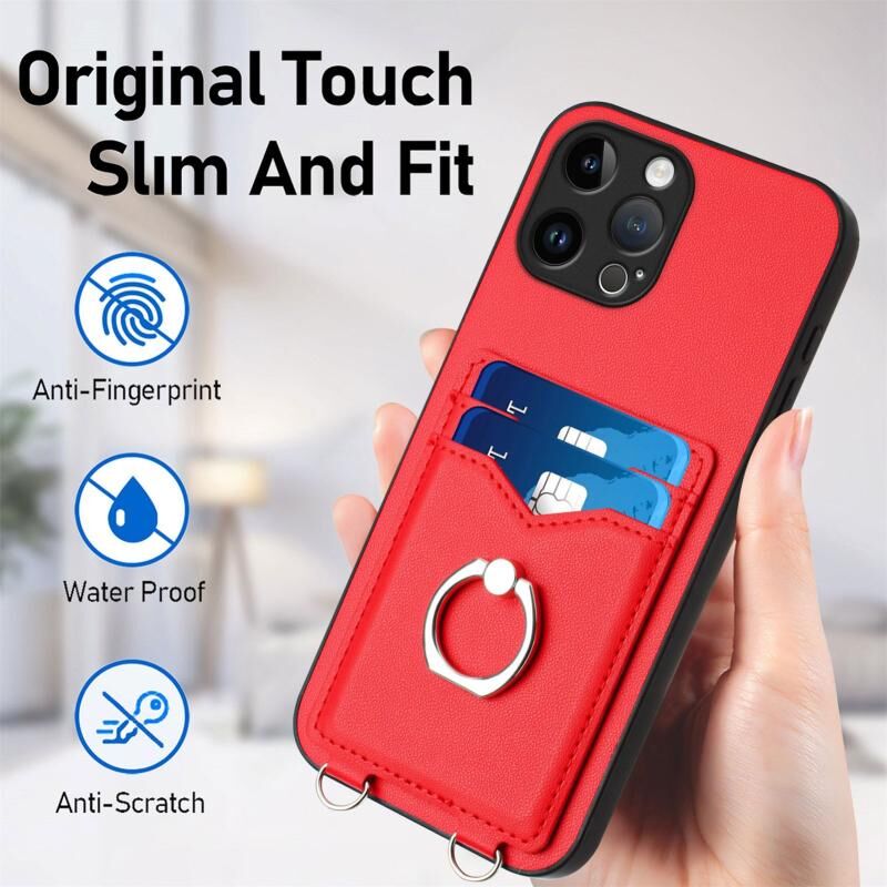 Θήκη τηλεφώνου για iPhone 13 Pro Max R20, με κορδόνι, δακτύλιο και θήκη για κάρτες (Ροζ)