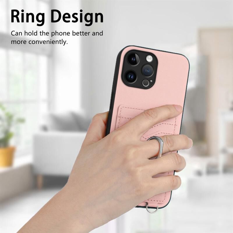 For iPhone 13 Pro Max R20 Ring Card Holder Phone Case(Pink)