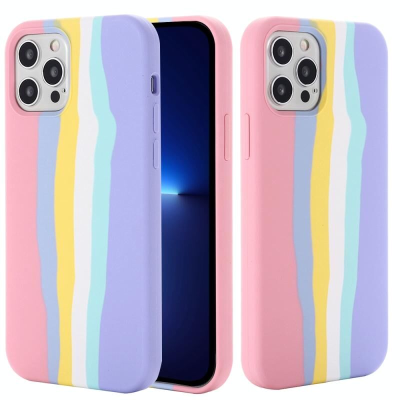 For iPhone 13 Pro Max Rainbow Liquid Silicone Shockproof Full Coverage Protective Case (Pink)