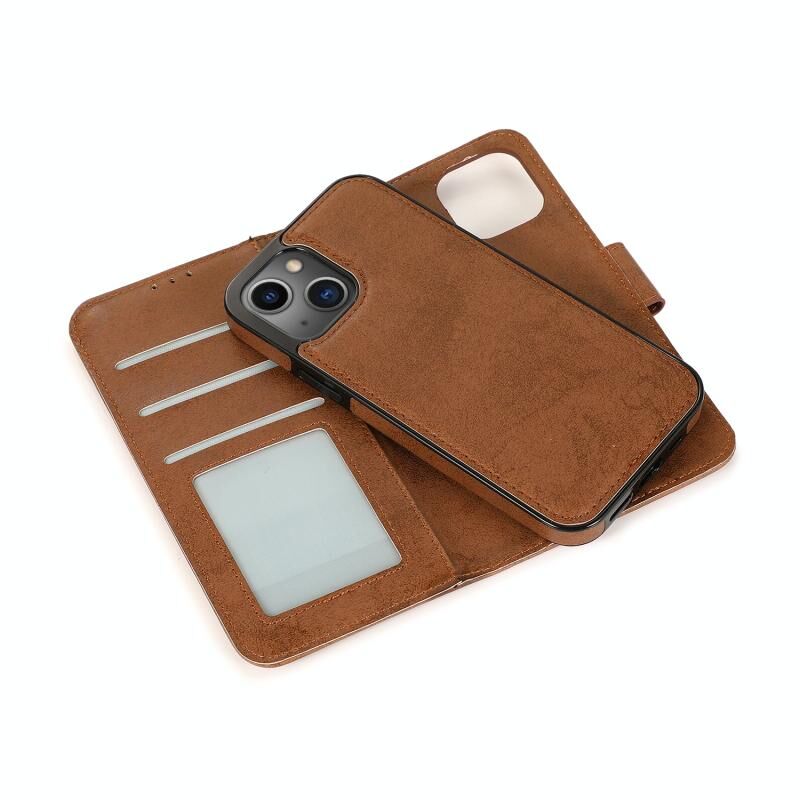 For iPhone 13 Pro Max Retro 2 in 1 Detachable Horizontal Flip Leather Case with Card Slots & Wallet (Brown)