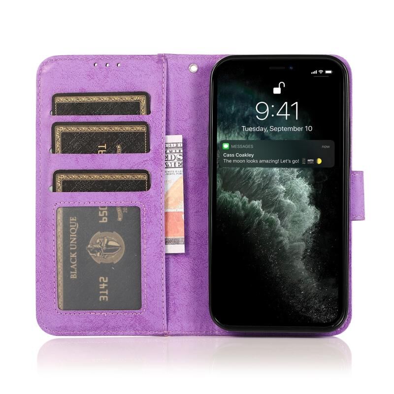 For iPhone 13 Pro Max Retro 2 in 1 Detachable Magnetic Horizontal Flip TPU + PU Leather Case with Holder & Card Slots & Photo Frame & Wallet (Purple)