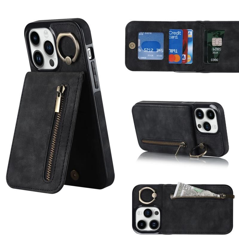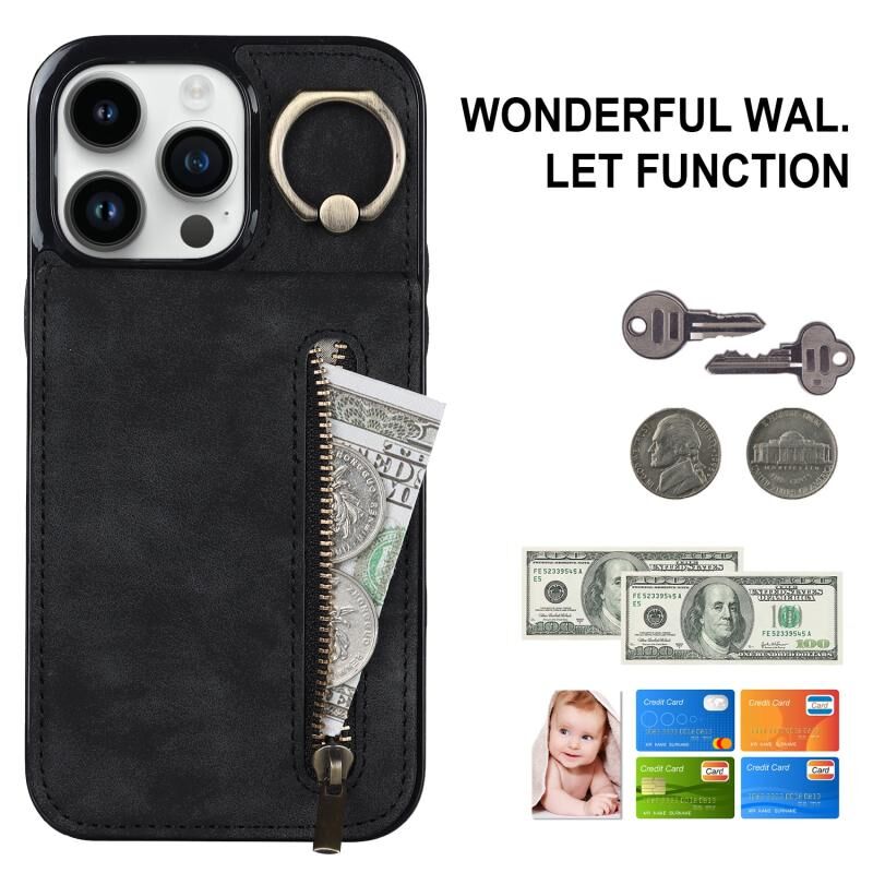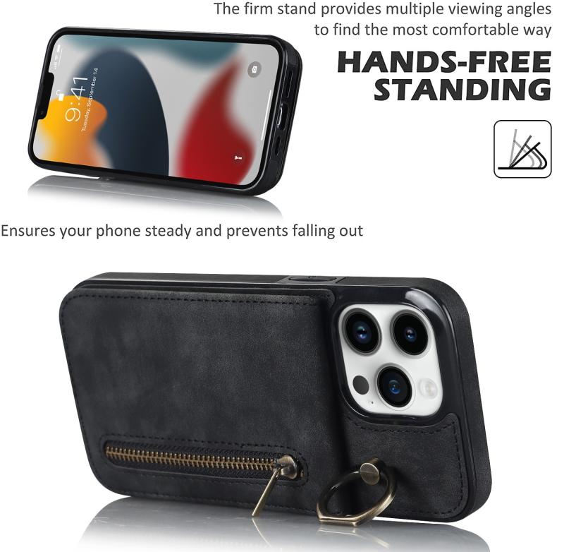 Θήκη iPhone 13 Pro Max Retro με Δαχτυλίδι & Θήκη Κάρτας RFID (Μαύρο)