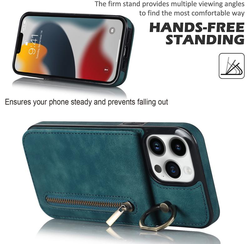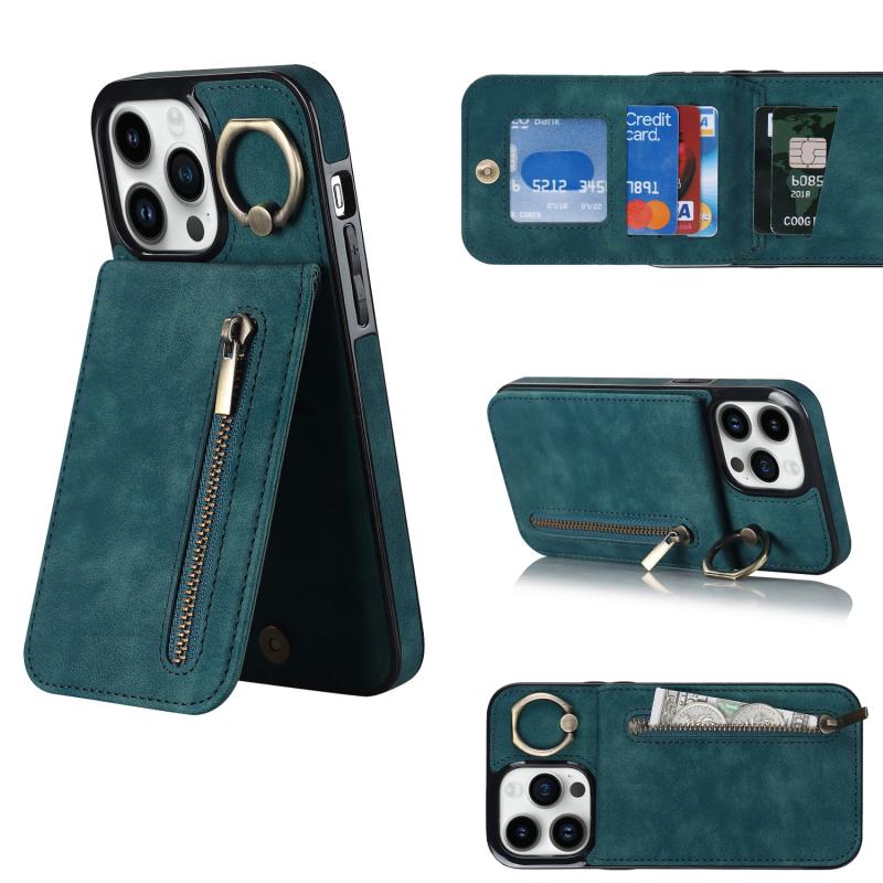 Θήκη iPhone 13 Pro Max Retro με Δαχτυλίδι & Θήκη Κάρτας RFID (Μπλε)