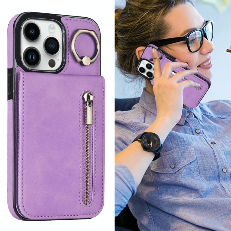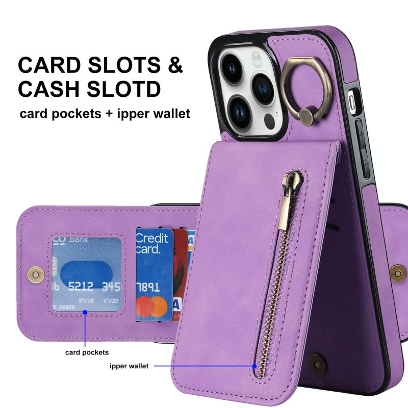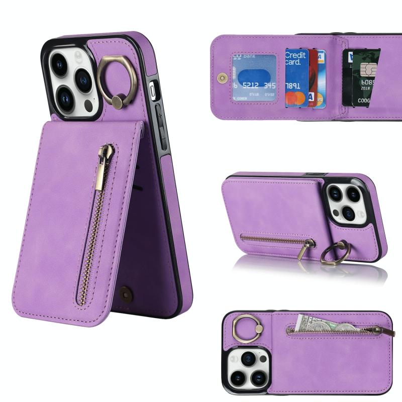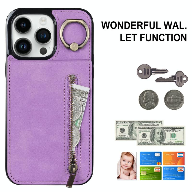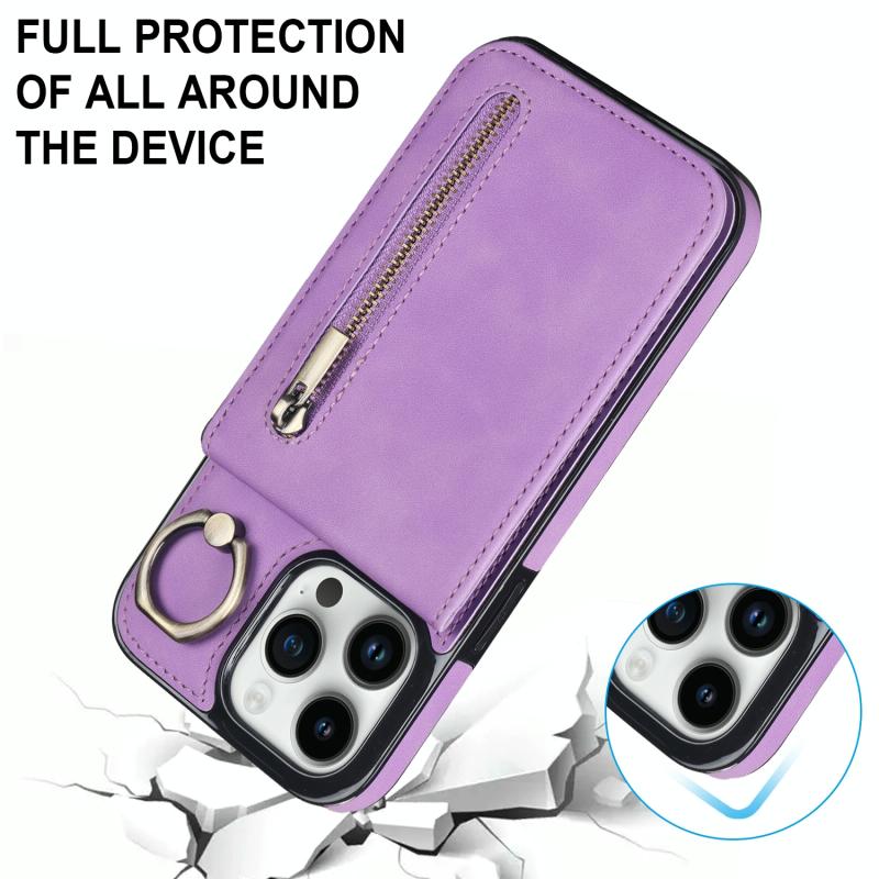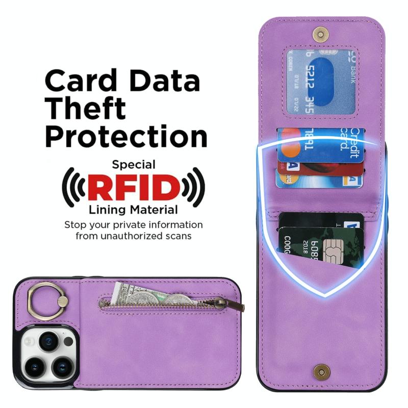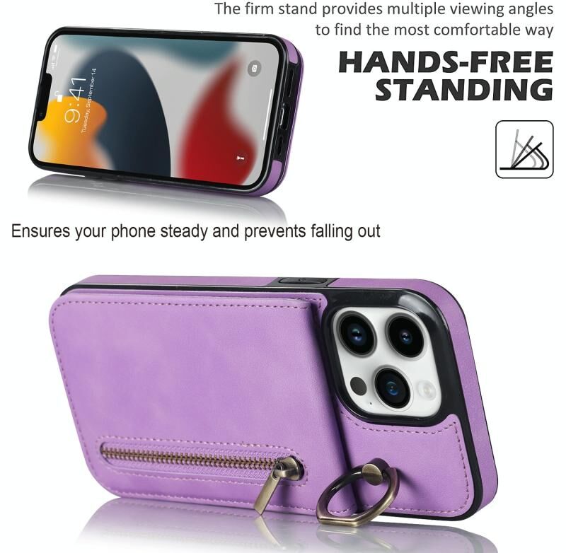 Θήκη iPhone 13 Pro Max Retro με Δαχτυλίδι & Θήκη Κάρτας RFID (Μωβ)