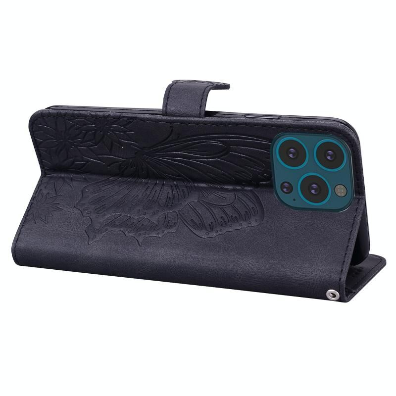 For iPhone 13 Pro Max Retro Skin Feel Butterflies Embossing Horizontal Flip Leather Case with Holder & Card Slots & Wallet (Black)