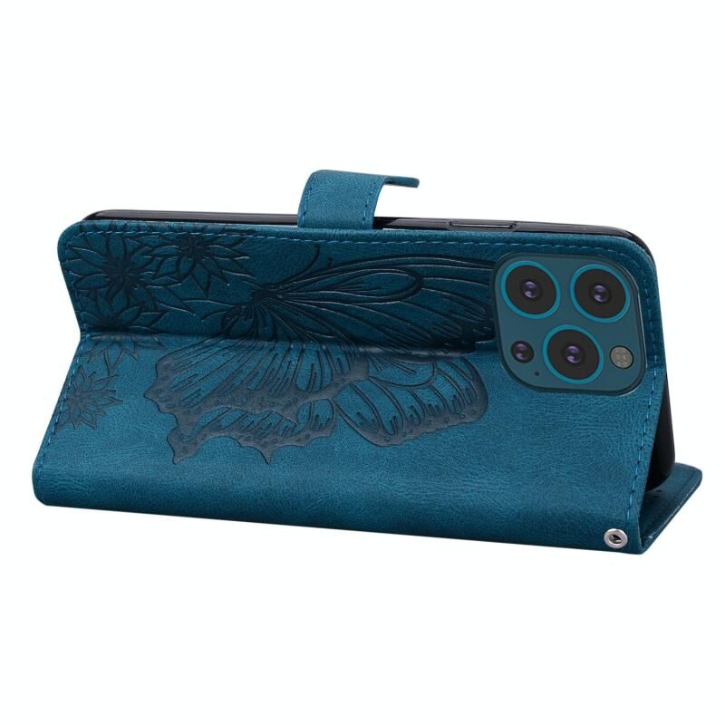 For iPhone 13 Pro Max Retro Skin Feel Butterflies Embossing Horizontal Flip Leather Case with Holder & Card Slots & Wallet (Blue)
