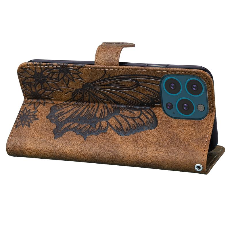 For iPhone 13 Pro Max Retro Skin Feel Butterflies Embossing Horizontal Flip Leather Case with Holder & Card Slots & Wallet (Brown)
