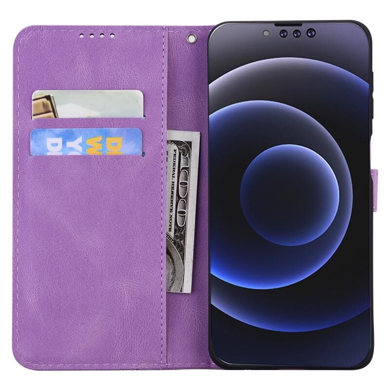 For iPhone 13 Pro Max Retro Skin Feel Butterflies Embossing Horizontal Flip Leather Case with Holder & Card Slots & Wallet (Purple)