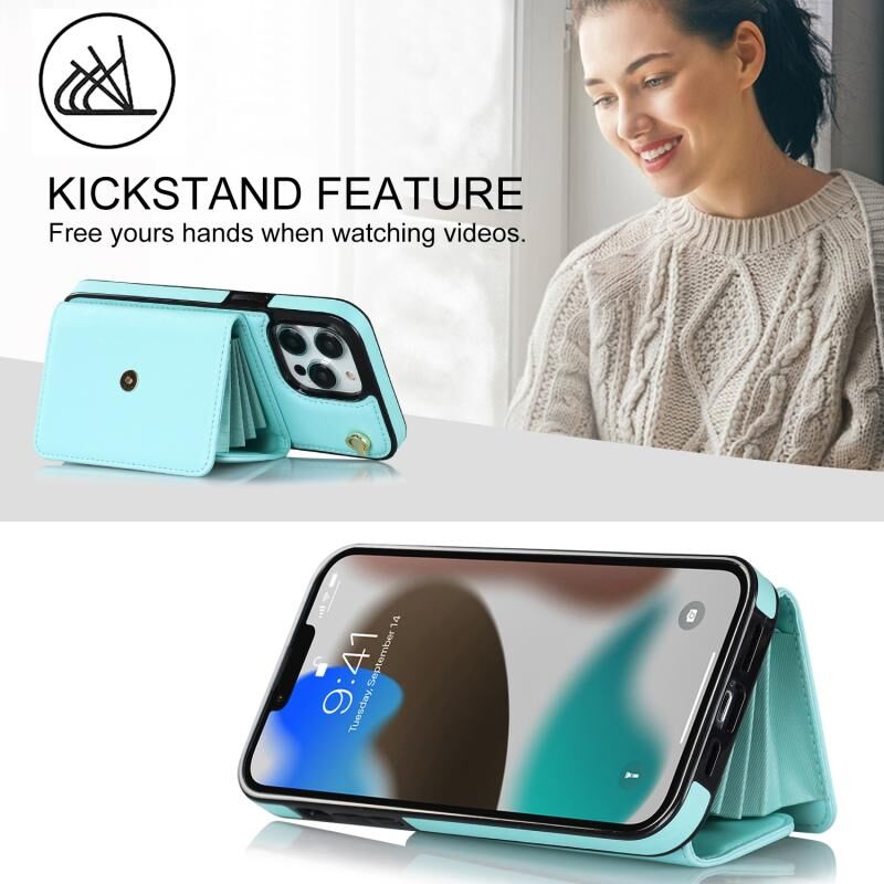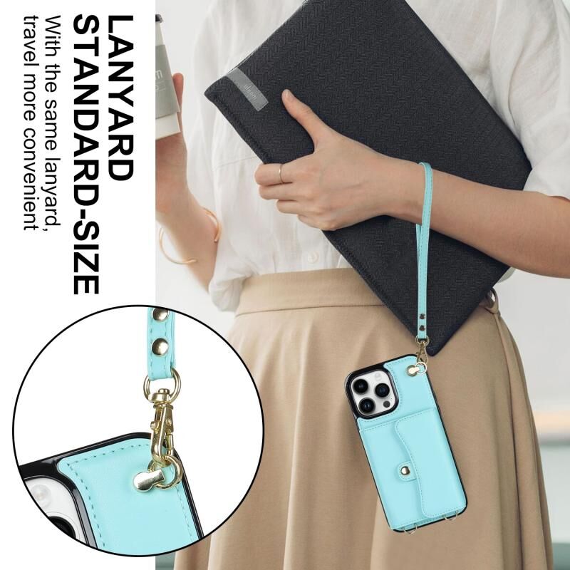 Θήκη κινητού για iPhone 13 Pro Max με υποδοχή κάρτας RFID και μακρύ λουρί (Κόκκινο)