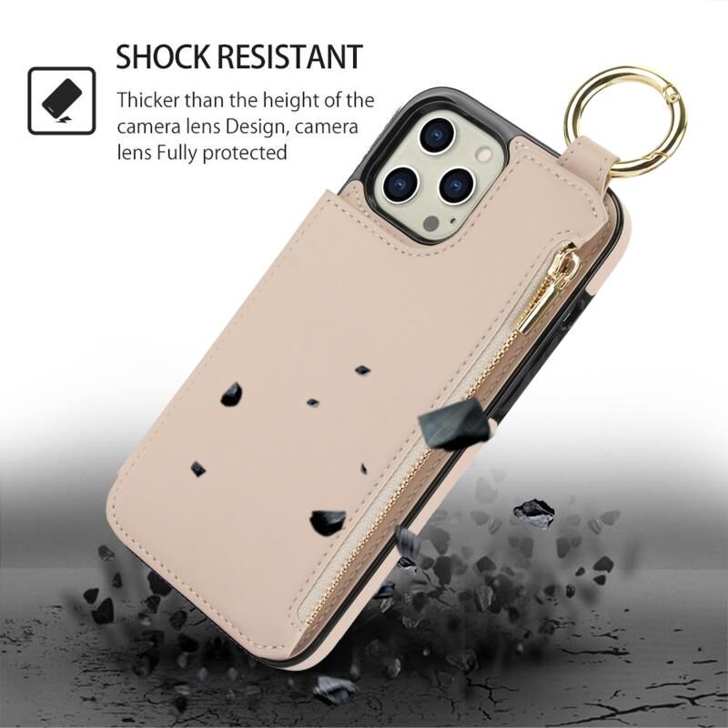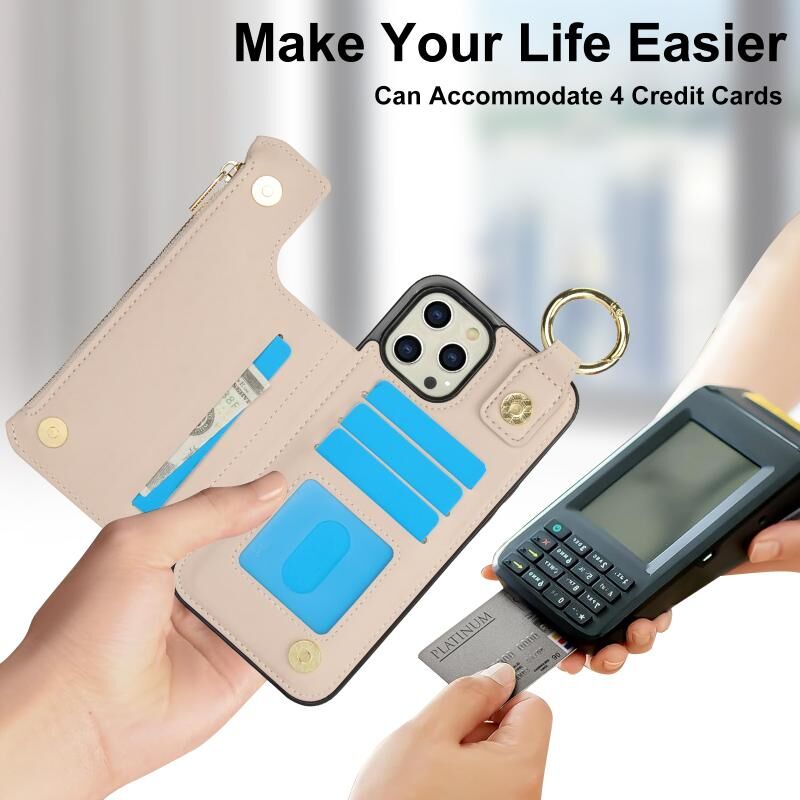 For iPhone 13 Pro Max RFlD Anti-theft Double Buckle Ring Zipper Card Phone Case(White)