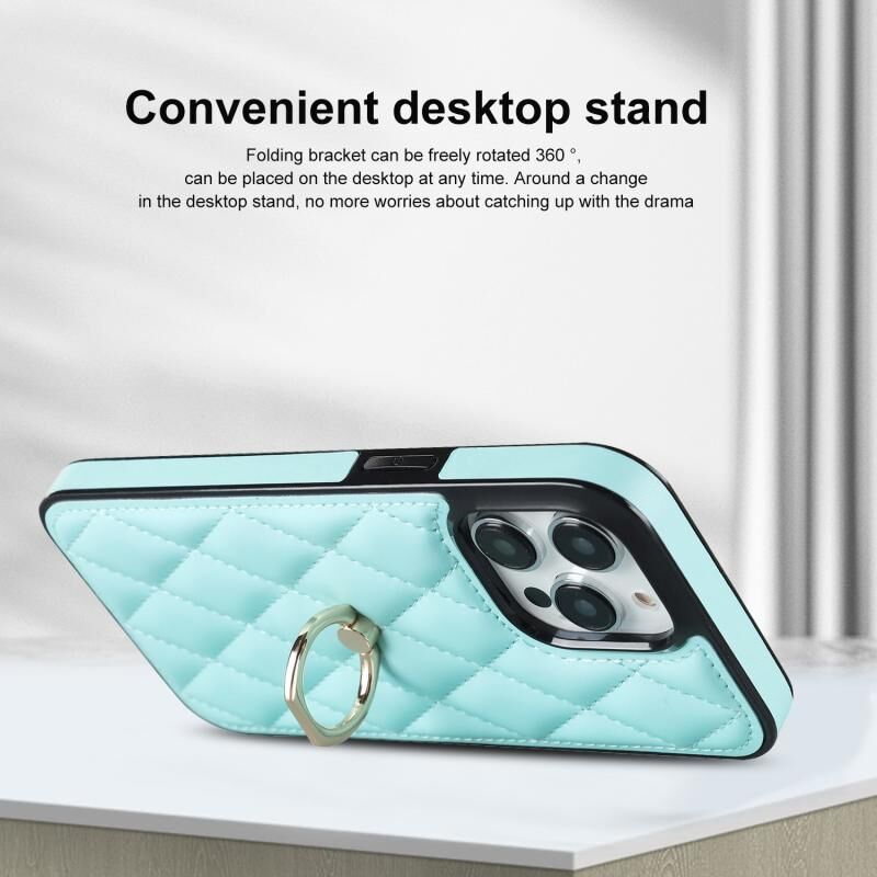For iPhone 13 Pro Max Rhombic PU Leather Phone Case with Ring Holder(Blue)