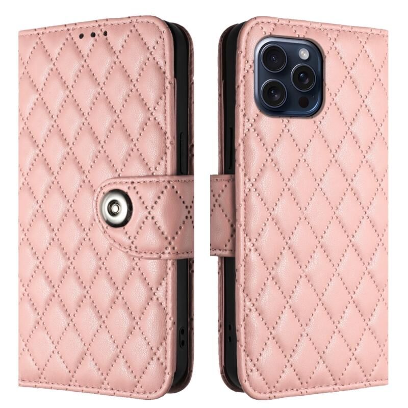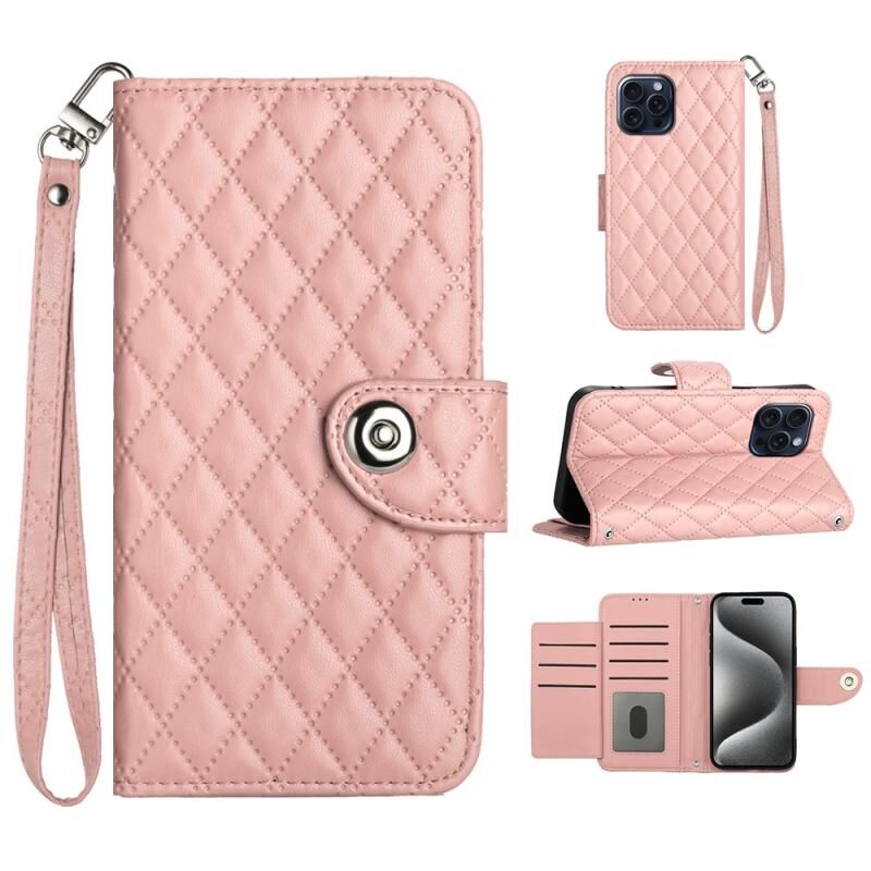 Θήκη τηλεφώνου από δέρμα με ανάγλυφη υφή ρόμβου για iPhone 13 Pro Max με κορδόνι (Κόκκινο)