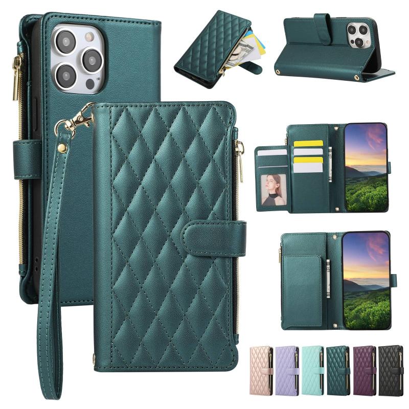 For iPhone 13 Pro Max Rhombic Zipper Wallet Leather Phone Case(Green)