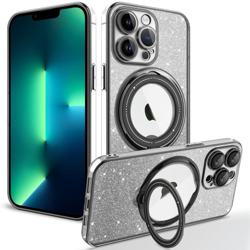 For iPhone 13 Pro Max Rotation MagSafe Holder Gradient Glitter TPU Phone Case(Black)