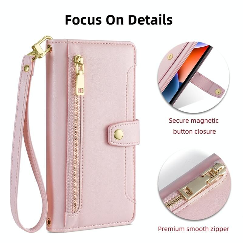 For iPhone 13 Pro Max Sheep Texture Cross-body Zipper Wallet Leather Phone Case(Pink)