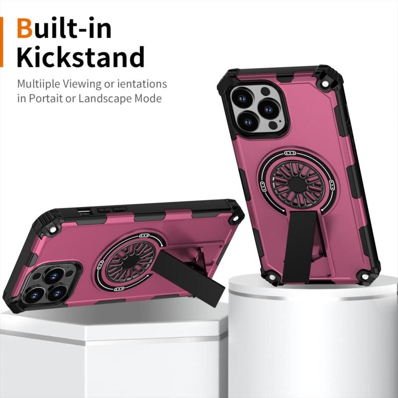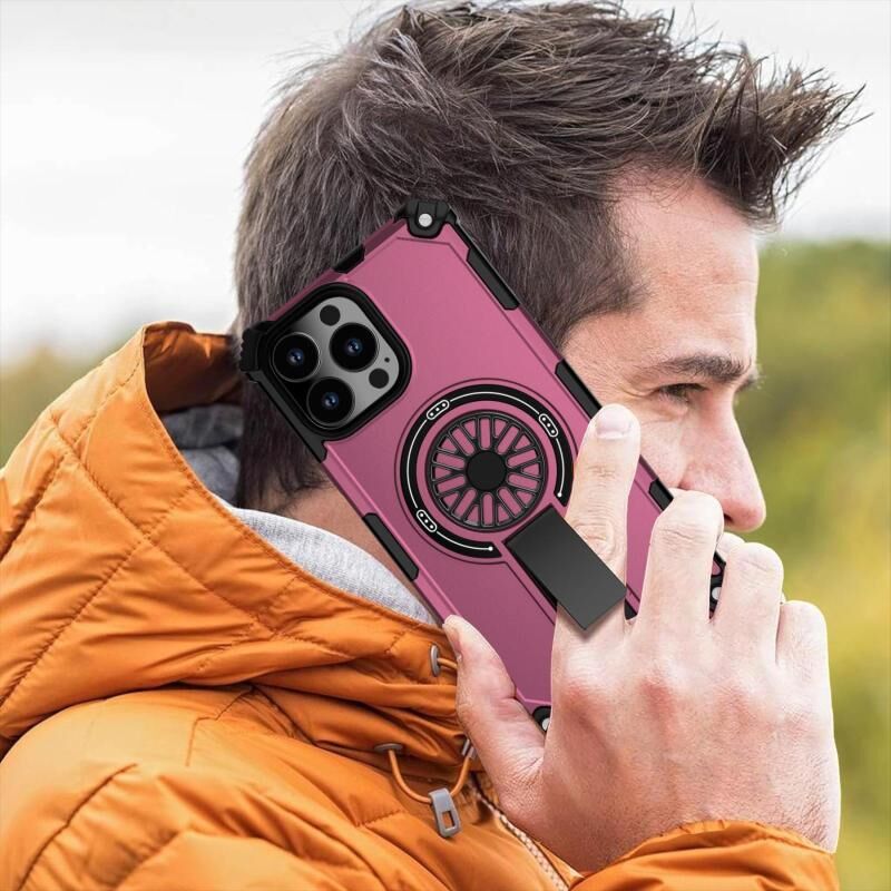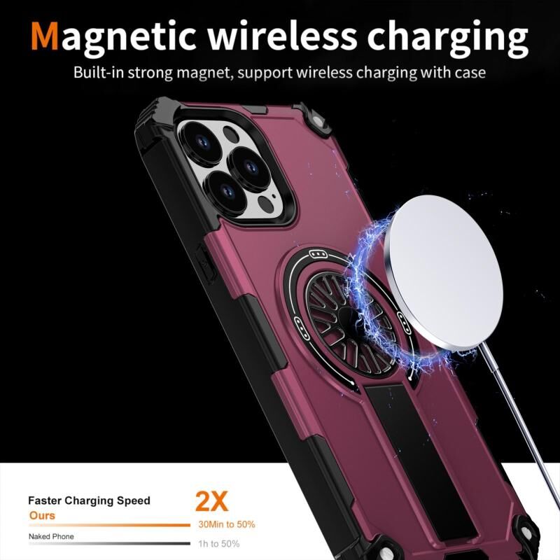 For iPhone 13 Pro Max Shockproof Kickstand Metallic Shaft MagSafe Phone Case(Purple)