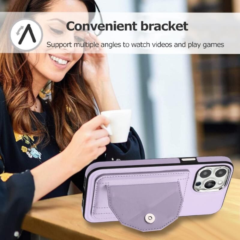For iPhone 13 Pro Max Shockproof Leather Phone Case with Card Holder(Purple)