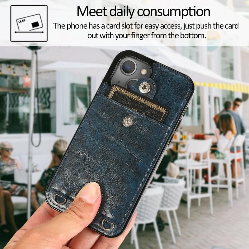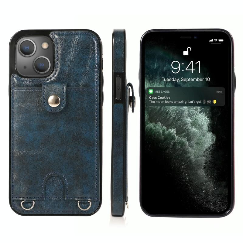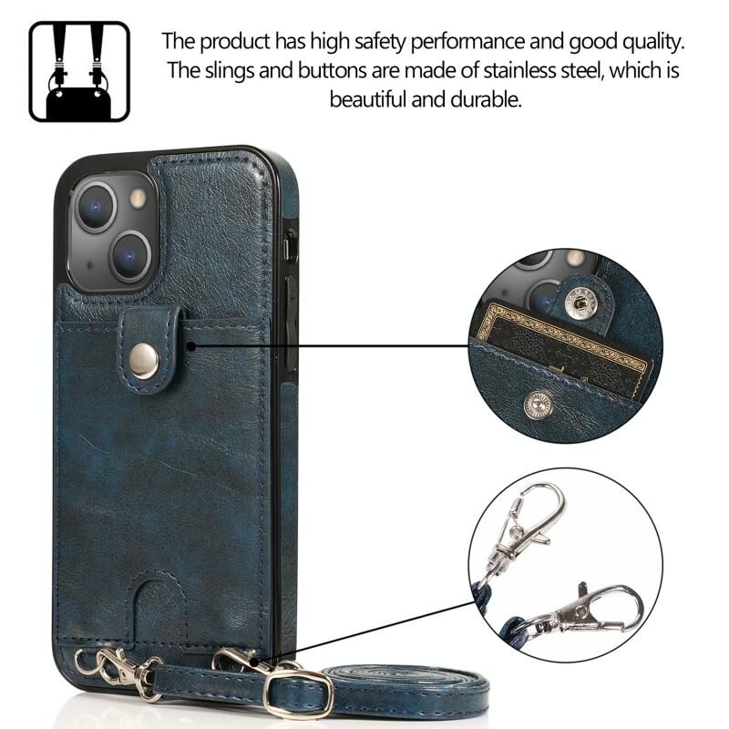 For iPhone 13 Pro Max Shockproof PU Leather + TPU Protective Case with Card Slot & Lanyard (Blue)