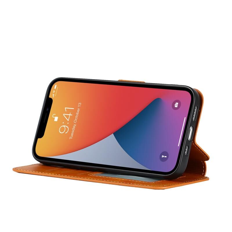 For iPhone 13 Pro Max Shockproof PU + TPU Leather Case with Card Slots & Holder & Photo Frame & Wallet (Khaki)