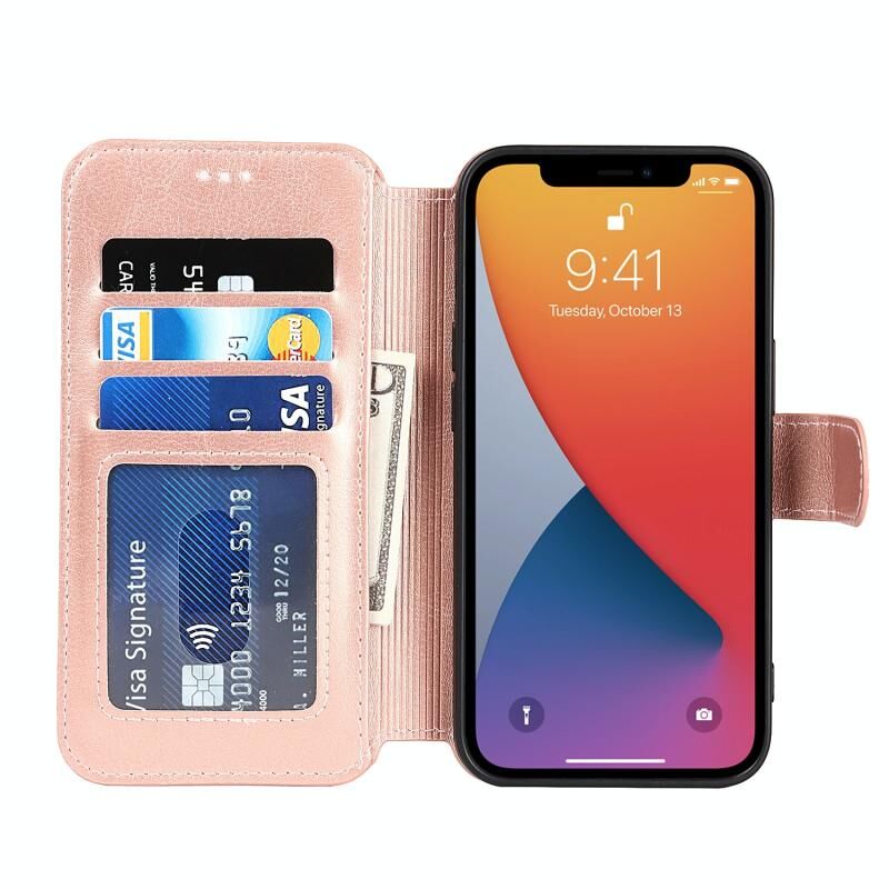 For iPhone 13 Pro Max Shockproof PU + TPU Leather Case with Card Slots & Holder & Photo Frame & Wallet (Rose Gold)