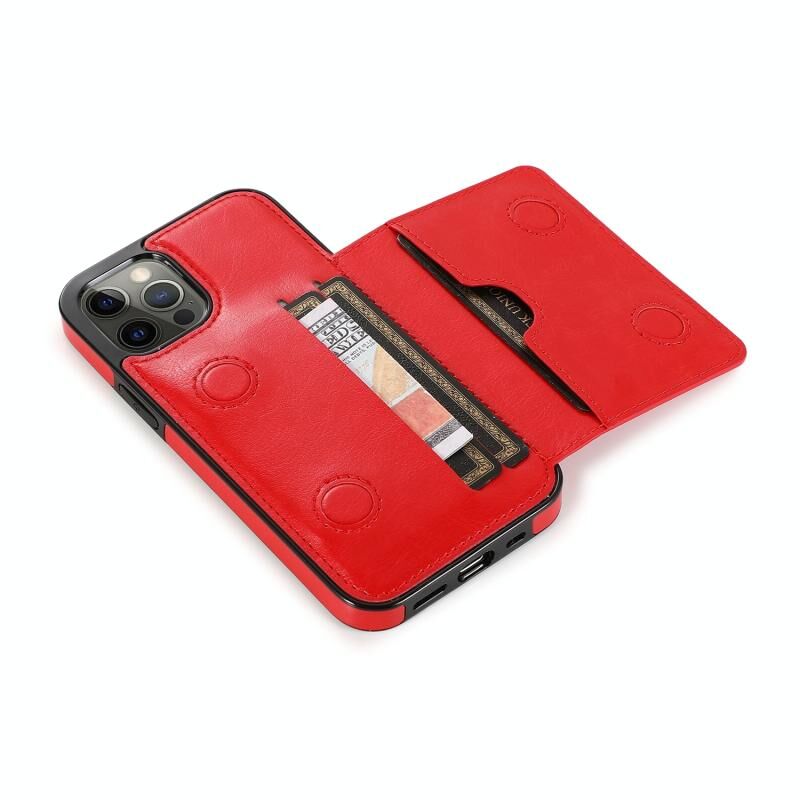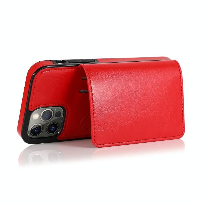 For iPhone 13 Pro Max Shockproof PU + TPU Protective Case with Card Slots & Holder (Red)