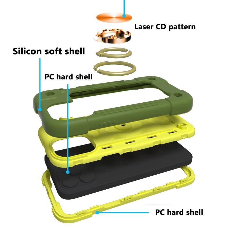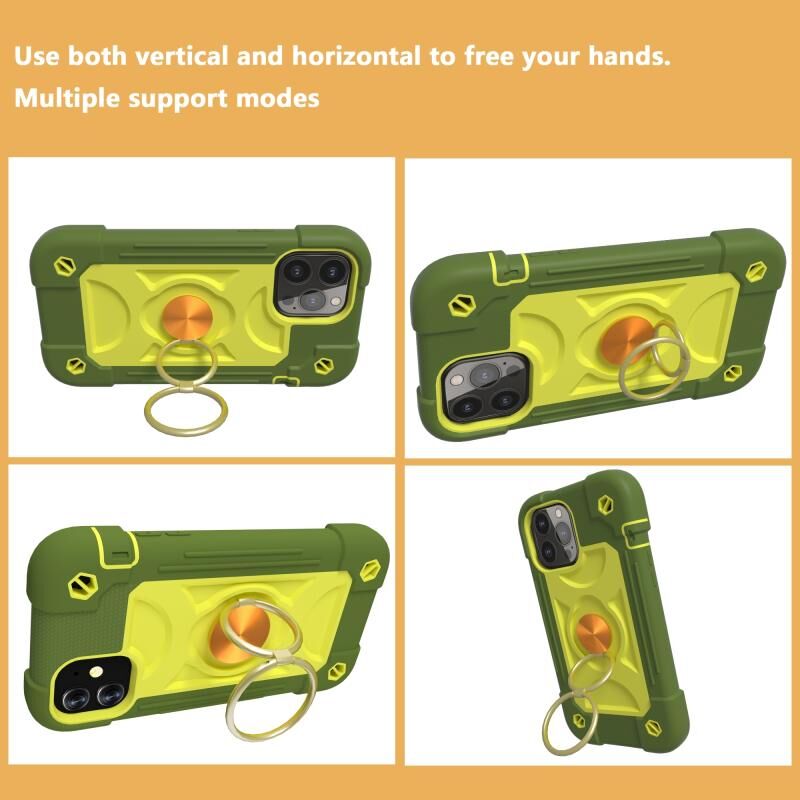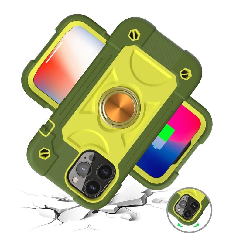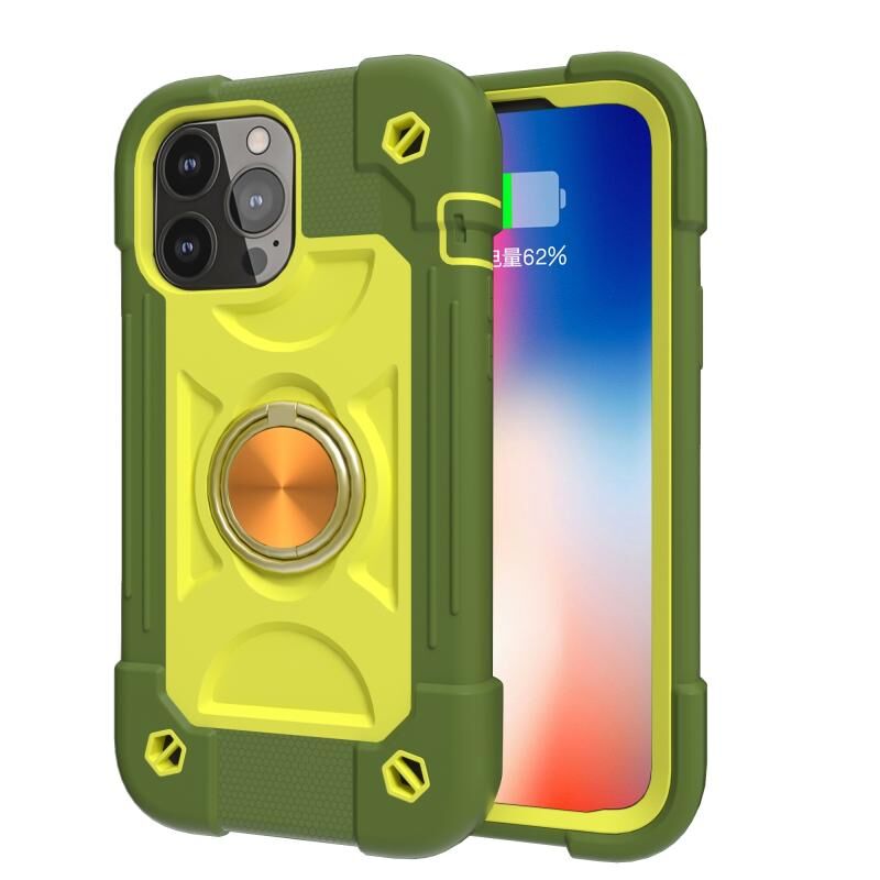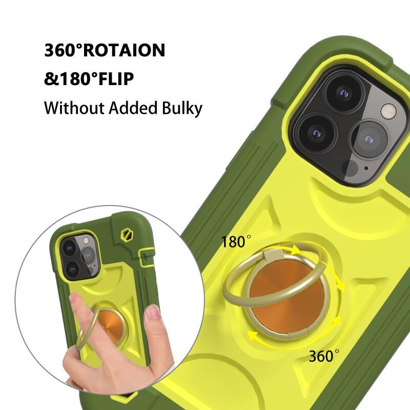 For iPhone 13 Pro Max Shockproof Silicone + PC Protective Case with Dual-Ring Holder (Avocado)
