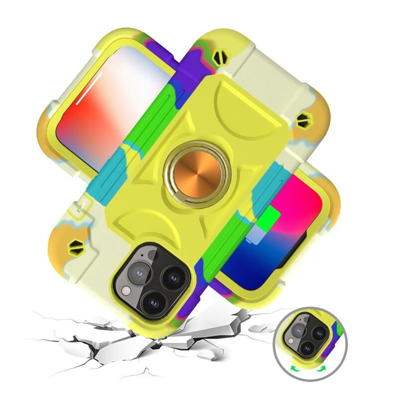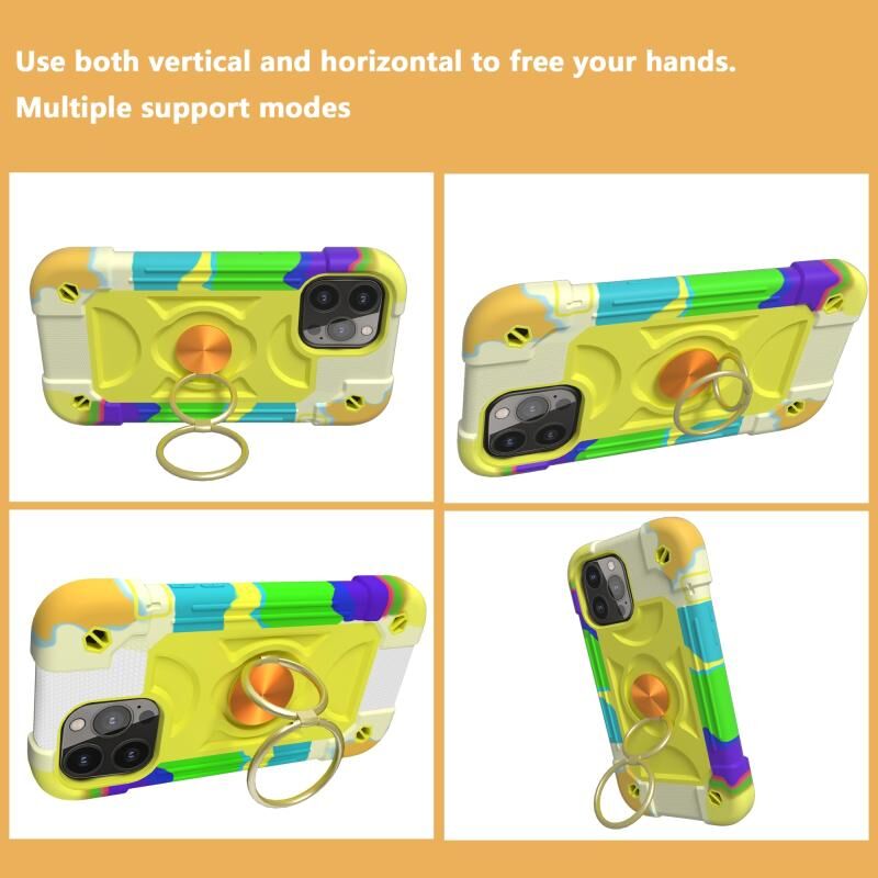 For iPhone 13 Pro Max Shockproof Silicone + PC Protective Case with Dual-Ring Holder (Colorful Yellow Green)