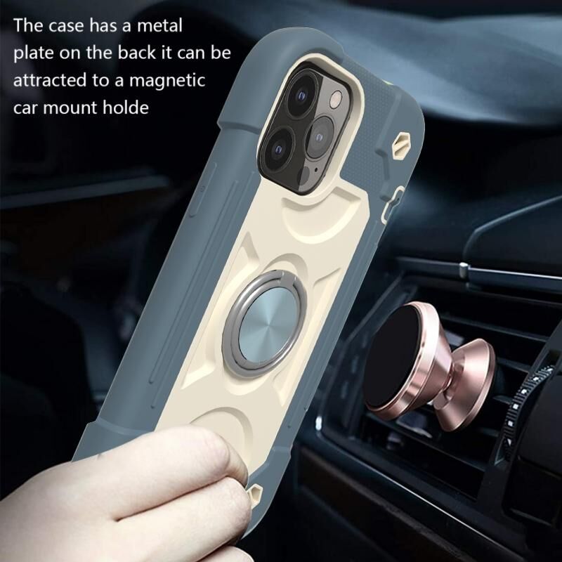 For iPhone 13 Pro Max Shockproof Silicone + PC Protective Case with Dual-Ring Holder (Daisy Blue)