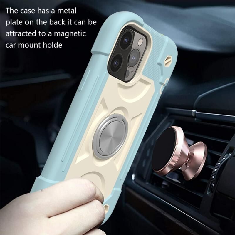 For iPhone 13 Pro Max Shockproof Silicone + PC Protective Case with Dual-Ring Holder (Ice Blue)