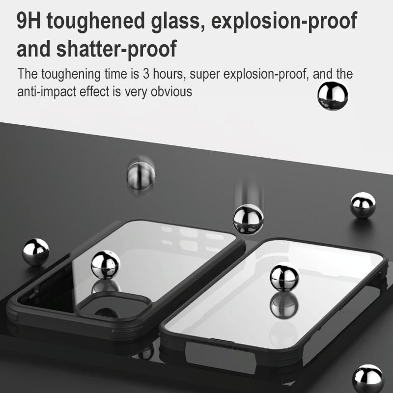 For iPhone 13 Pro Max Shockproof TPU + Double-sided Glass Protective Case (Black)