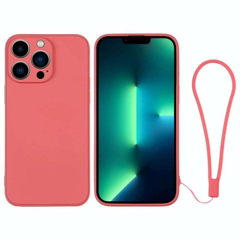 Θήκη σιλικόνης για iPhone 13 Pro Max με λουρί καρπού (πορτοκαλί-κόκκινο)