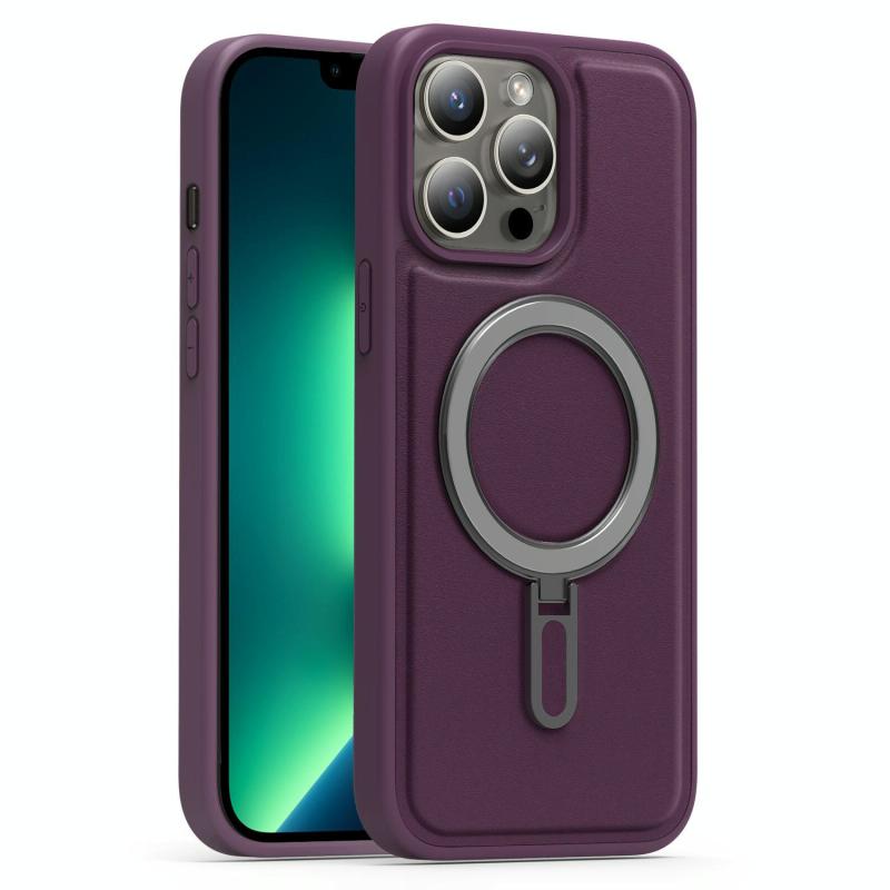For iPhone 13 Pro Max Silver Shield MagSafe Holder Shockproof Phone Case(Purple)
