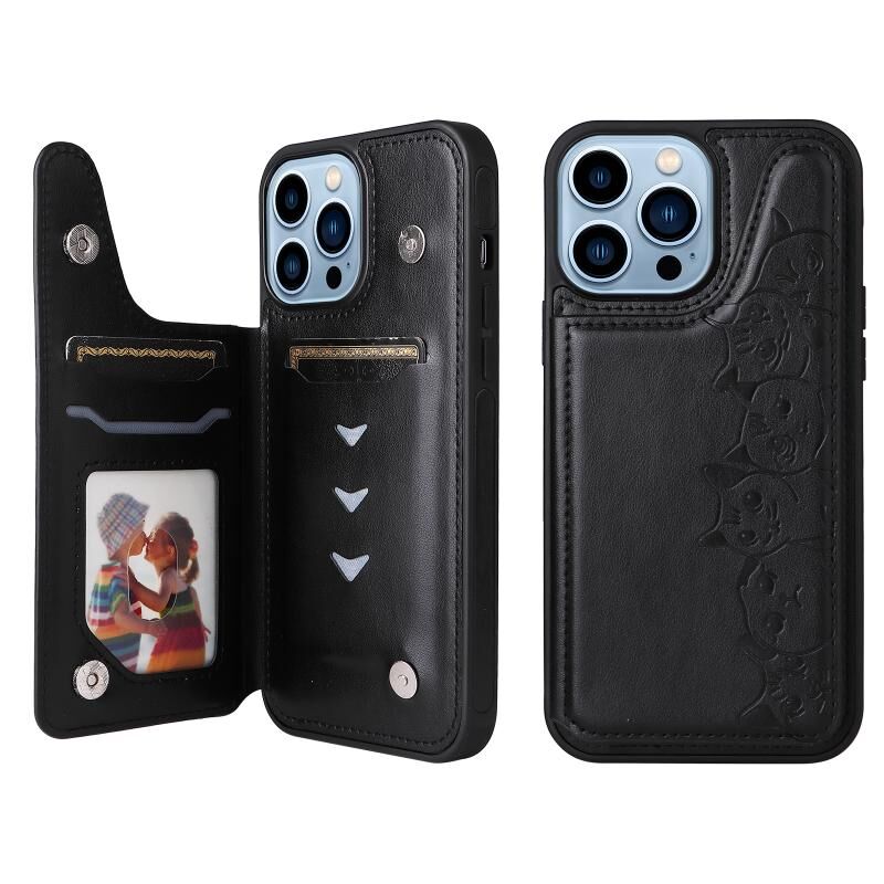 Θήκη κινητού τηλεφώνου για iPhone 13 Pro Max με ανάγλυφο σχέδιο έξι γατών, αντικραδασμική (Μαύρο)