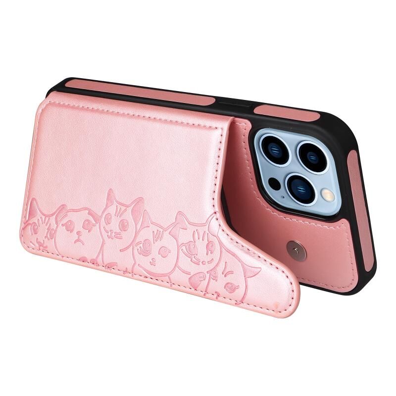 Θήκη κινητού τηλεφώνου για iPhone 13 Pro Max με ανάγλυφο σχέδιο έξι γατών, αντικραδασμική (Μαύρο)