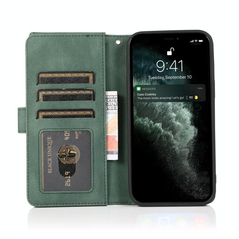 For iPhone 13 Pro Max Skin-feel Crazy Horse Texture Zipper Wallet Bag Horizontal Flip Leather Case with Holder & Card Slots & Wallet & Lanyard (Dark Green)
