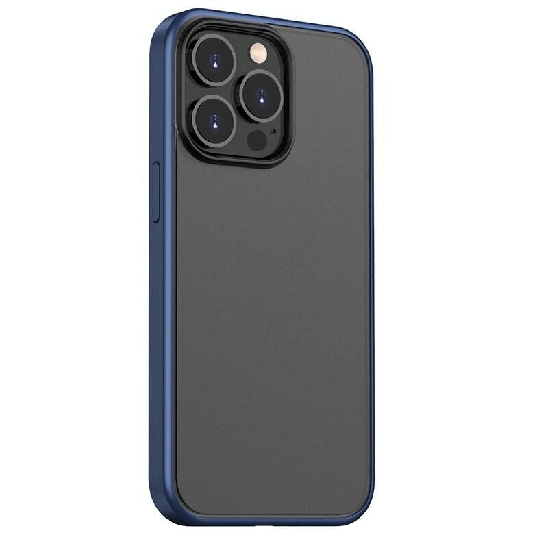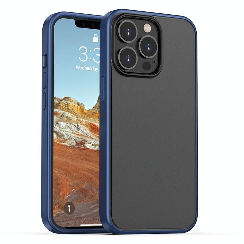 For iPhone 13 Pro Max Skin Feel Frosted PC + TPU Shockproof Case with Color Button (Blue)